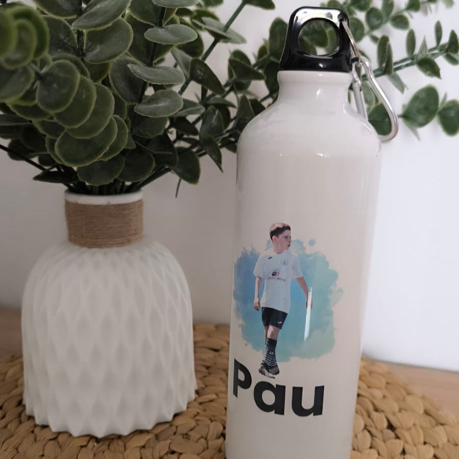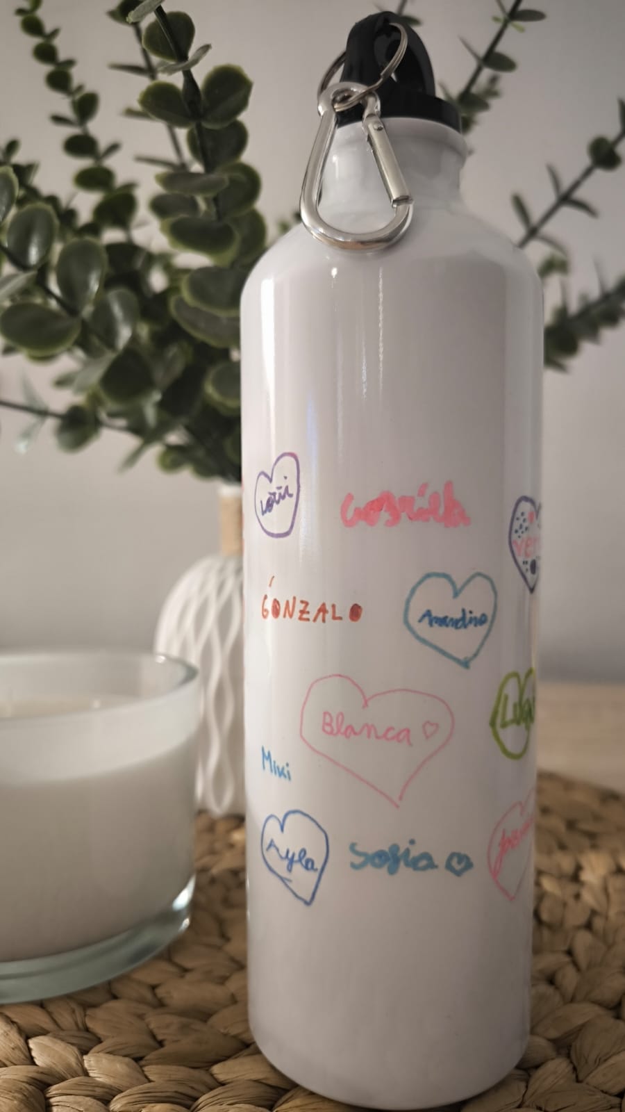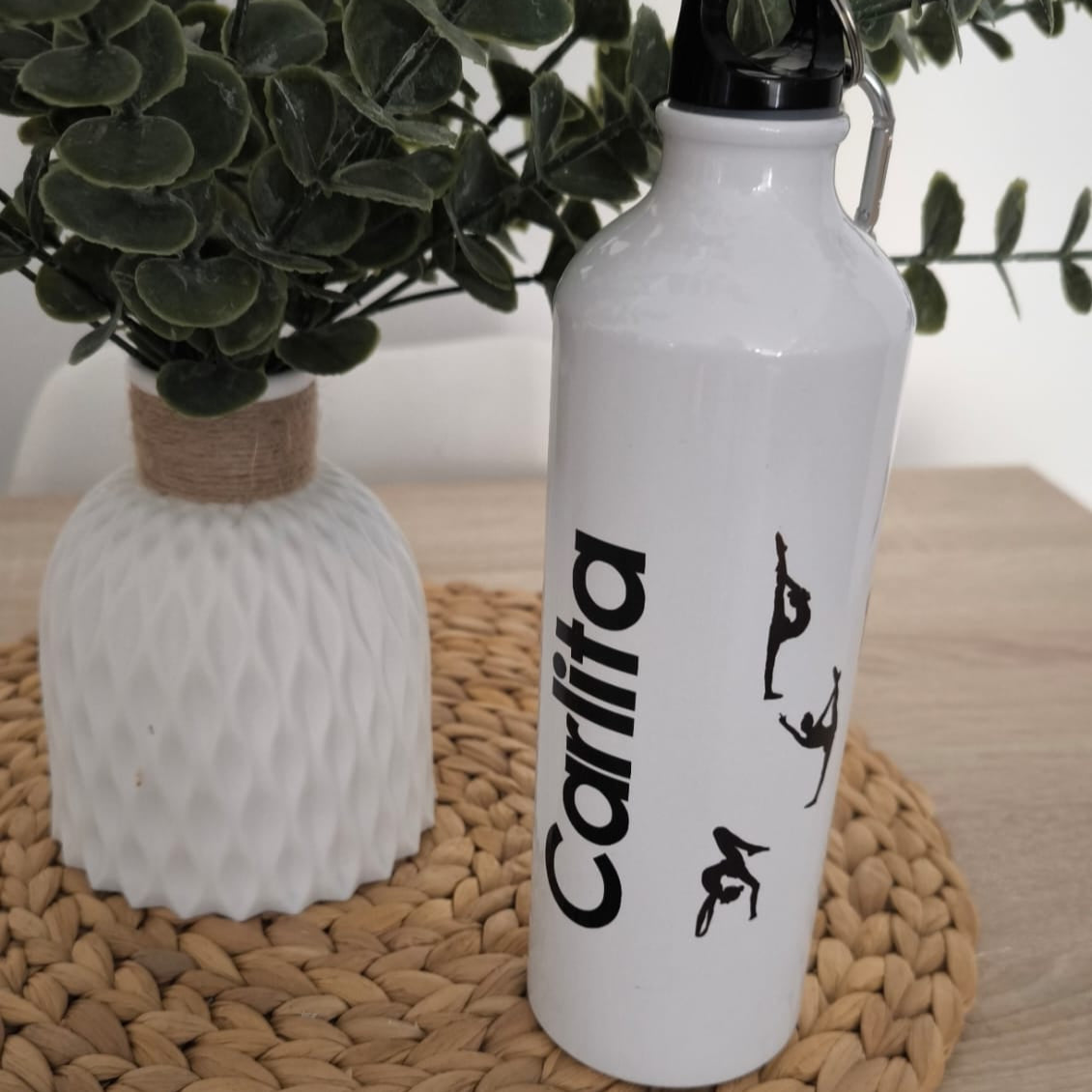 Botella de aluminio de 800ml de capacidad. Acabado suave y brillante color blanco.