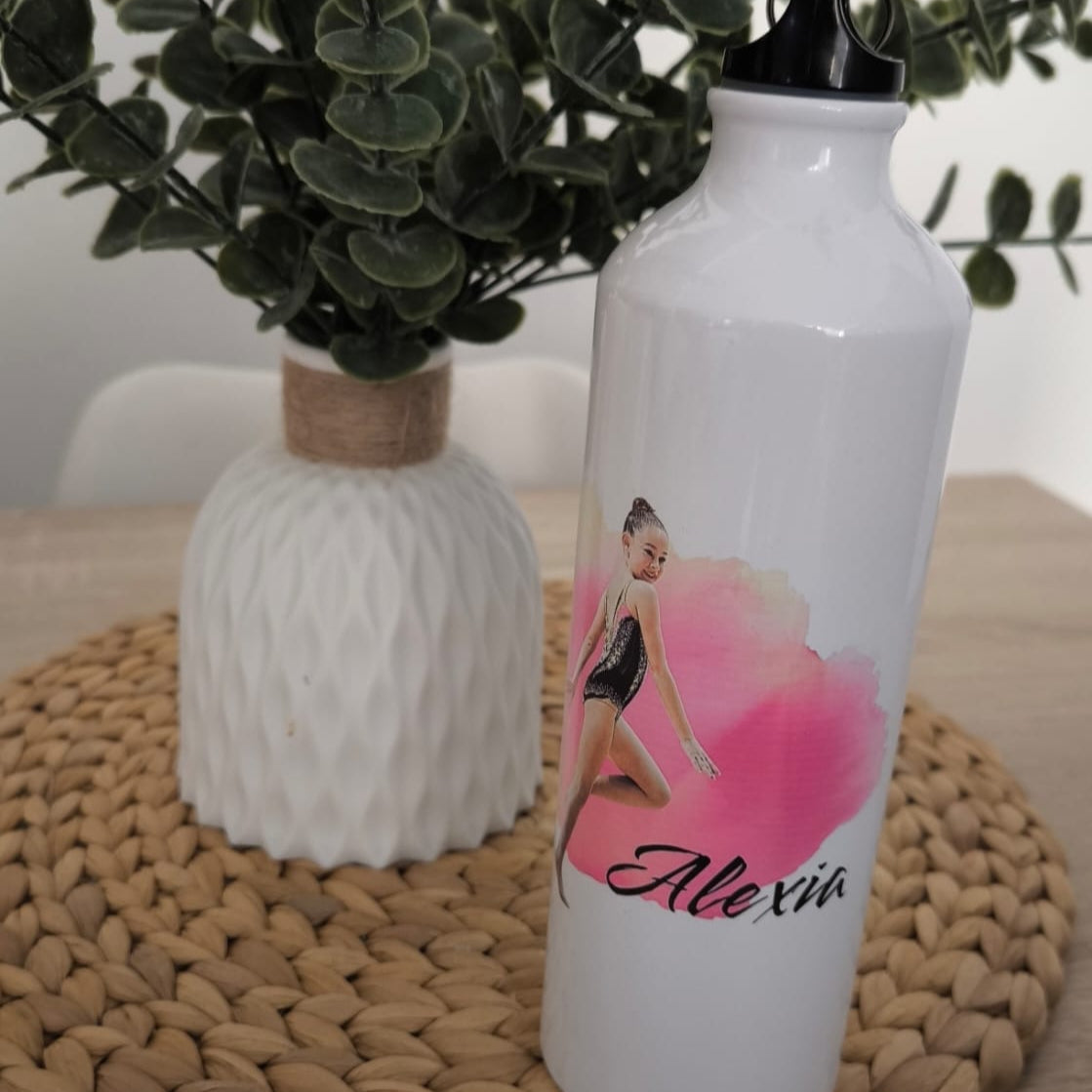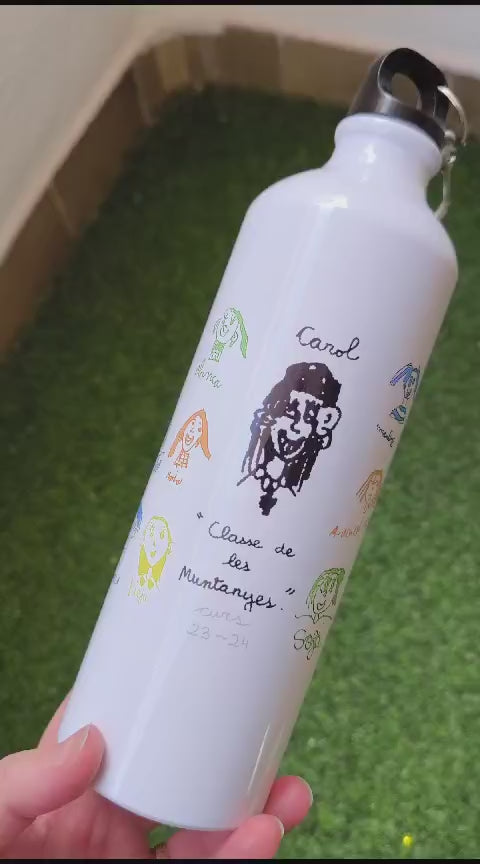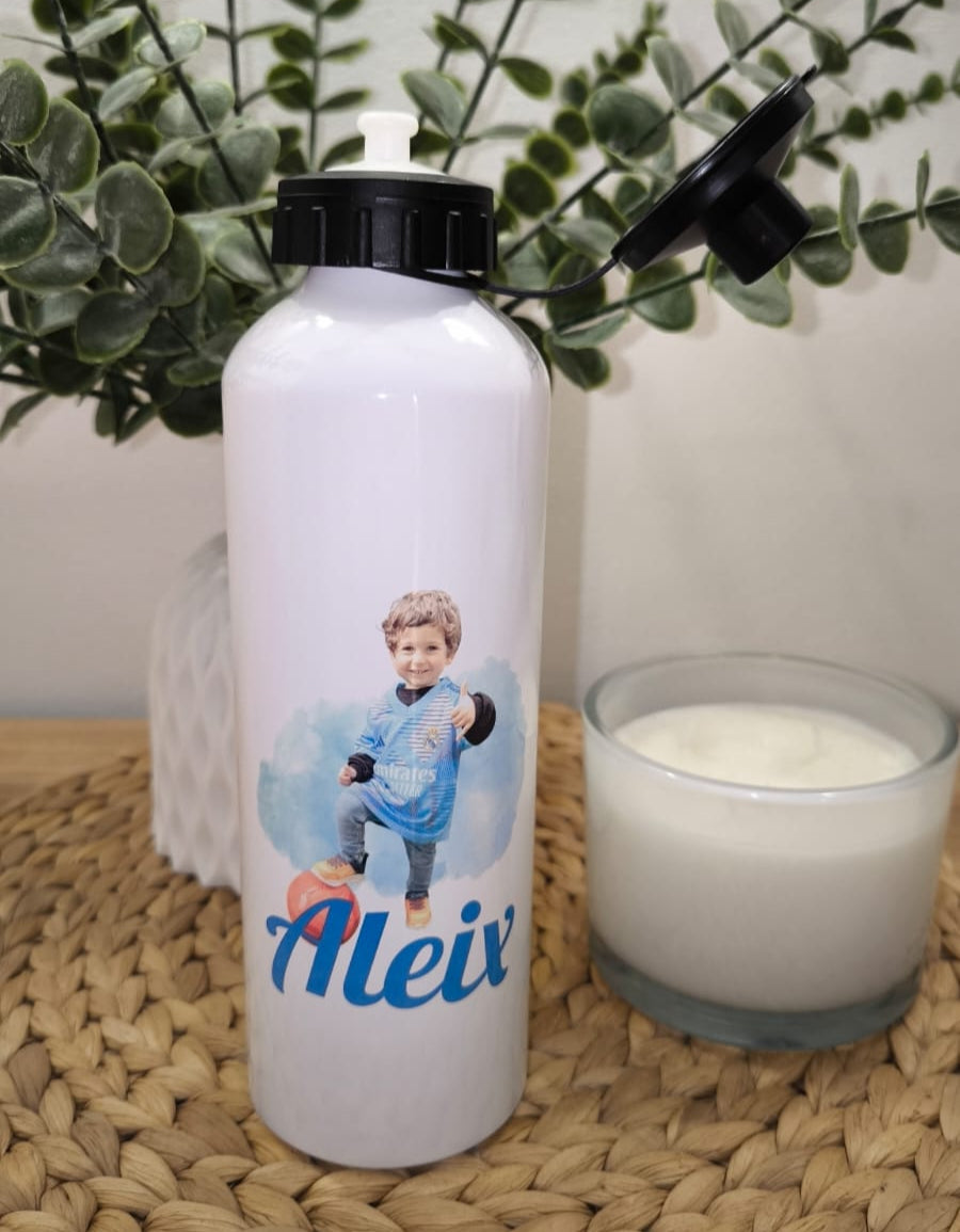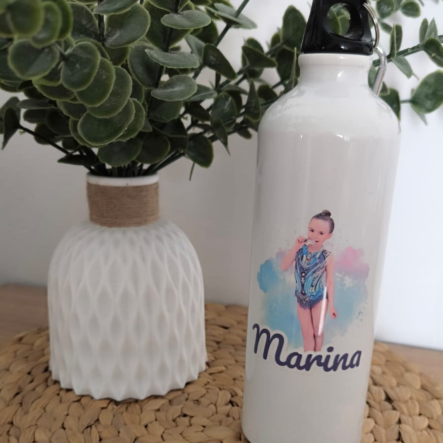 Botella de aluminio de 800ml de capacidad. Acabado suave y brillante color blanco.