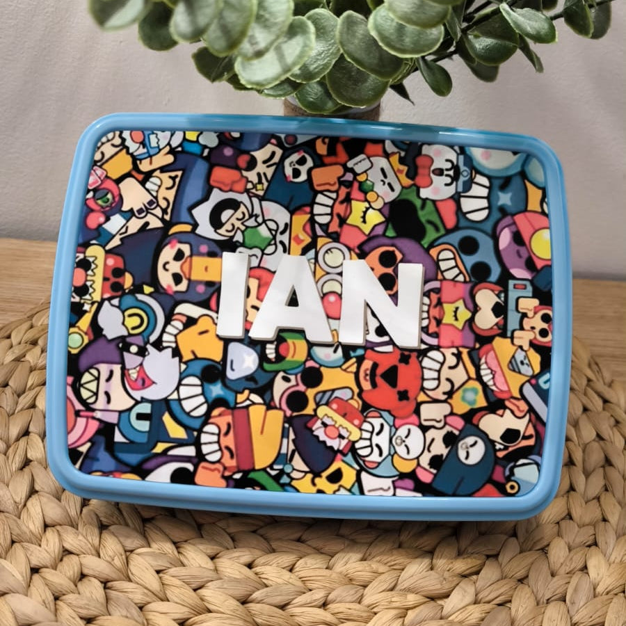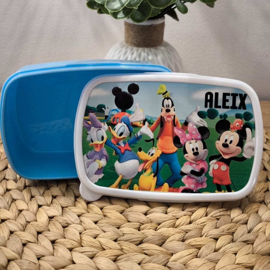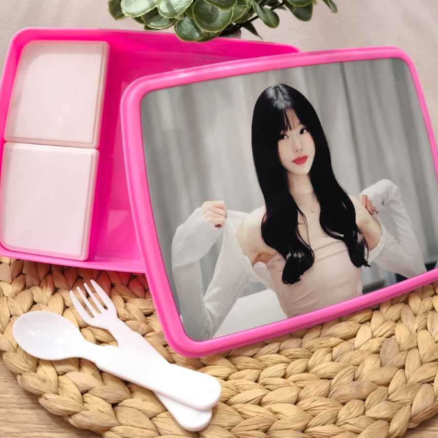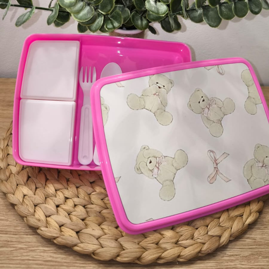 - Modelo grande con 3 compartimentos, 2 contenedores de alimentos pequeños y cubiertos, a elegir entre rosa o azul, medidas: 23*18*4 cm.