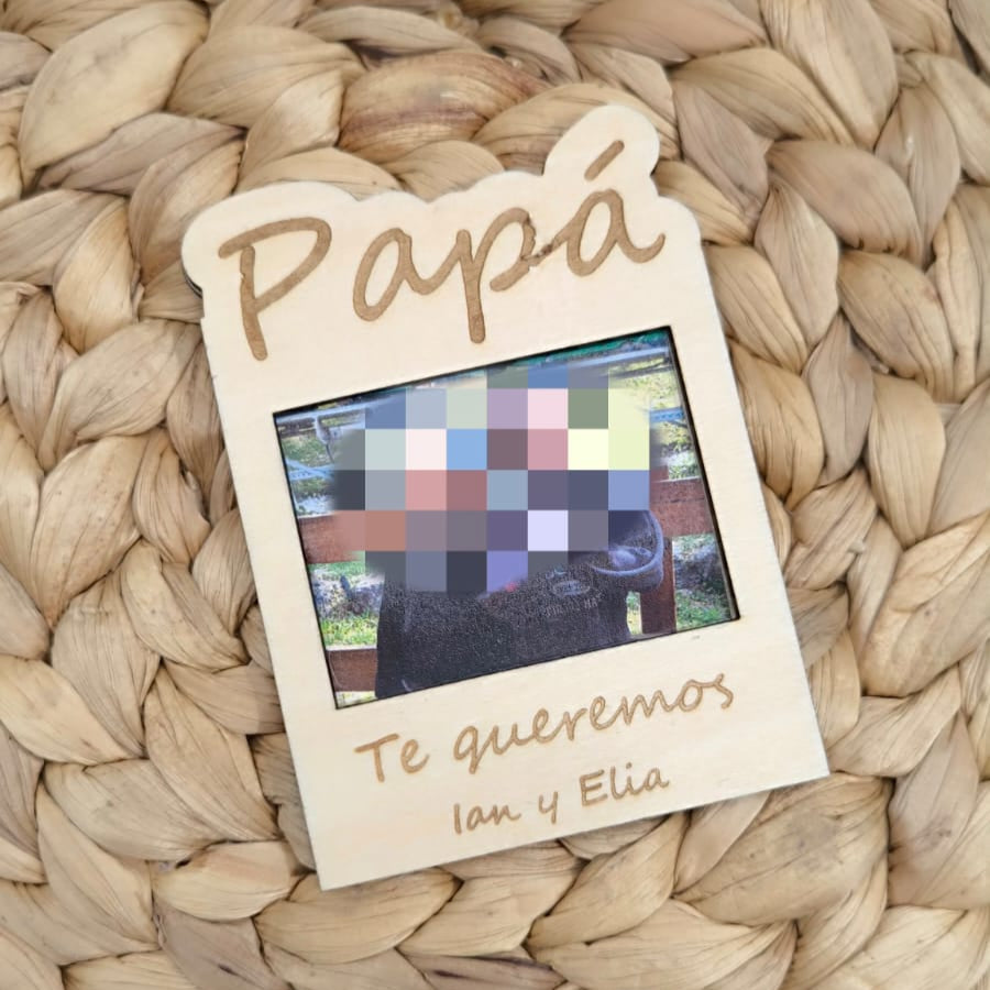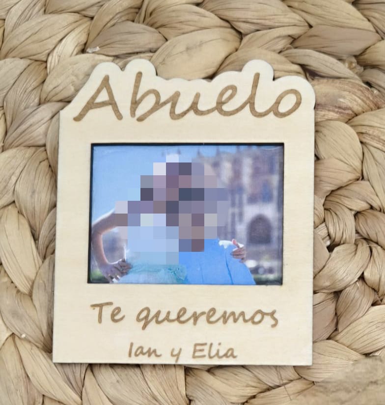 Marco de madera grabado a láser, opción de colgar o con imán en la parte posterior.