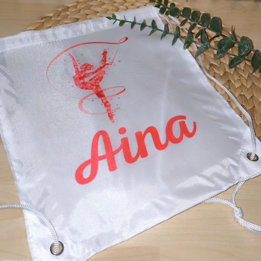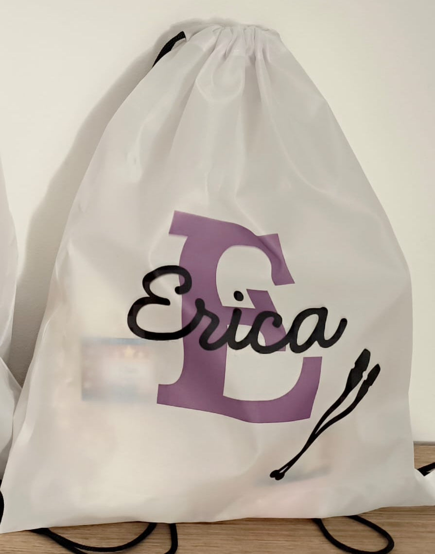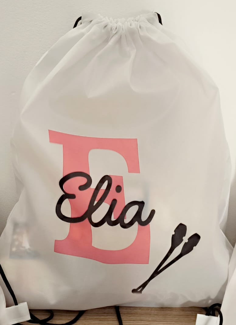 Mochila blanca con cuerdas autocierre color blancas y ojales metálicos personalizable por sublimación.