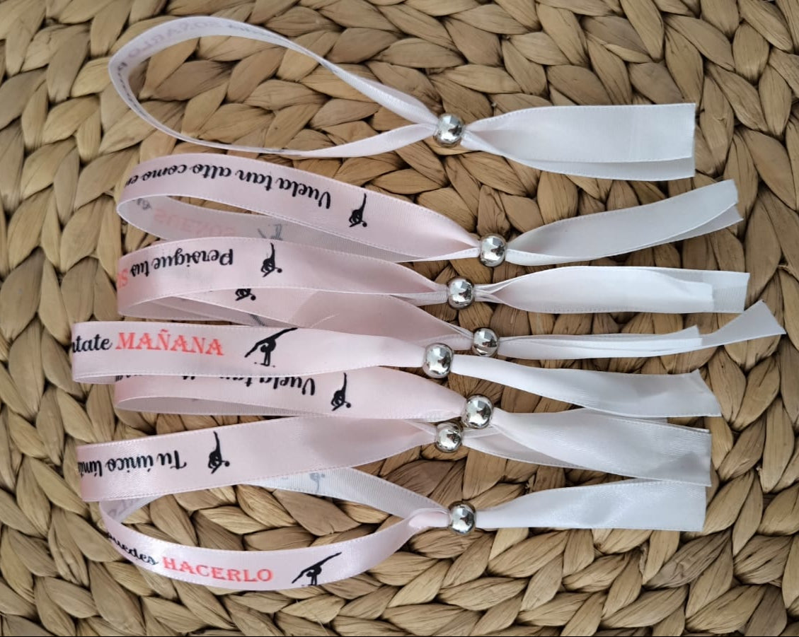 Pulsera de poliéster de 1,5cm de ancho con bolita color plata ajustable.