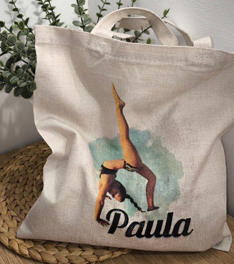 Tote bags en resistente poliéster de suave tacto, personalizables por sublimación. Con asas largas de 70 cm reforzadas, con acabado cosido y resistencia de hasta 8 kg de peso.