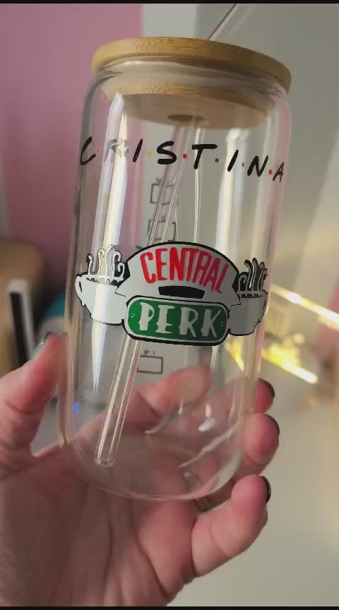 Vaso de cristal con tapa y pajita